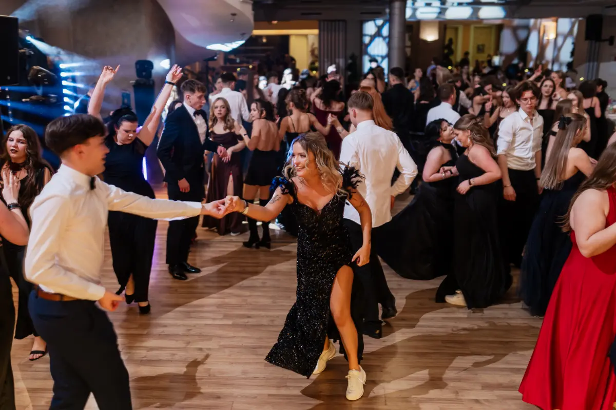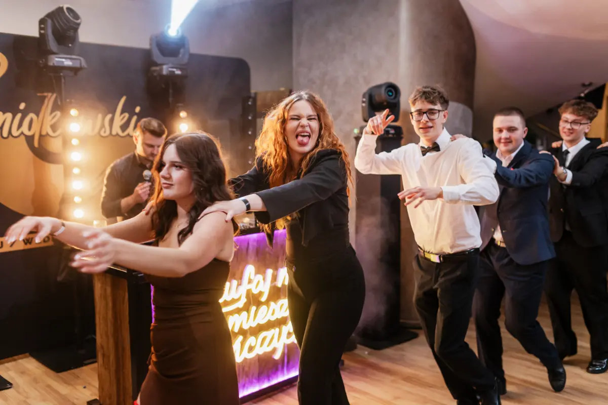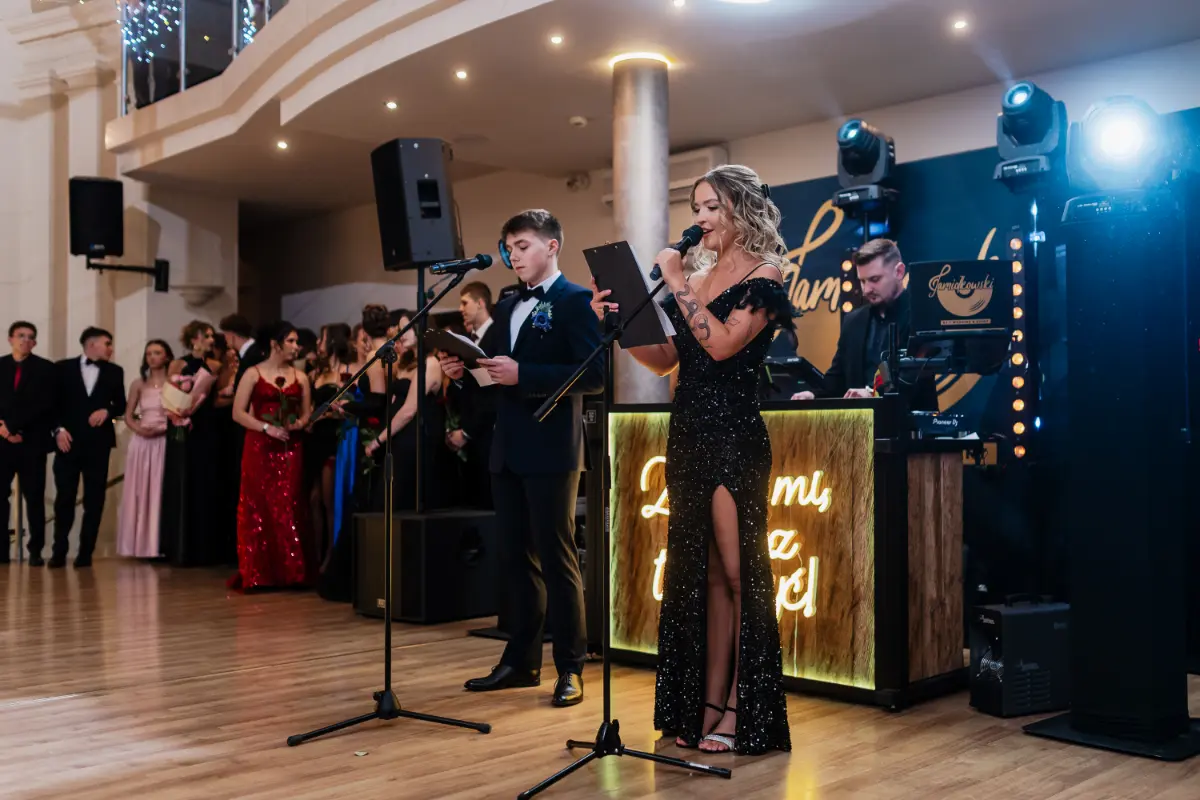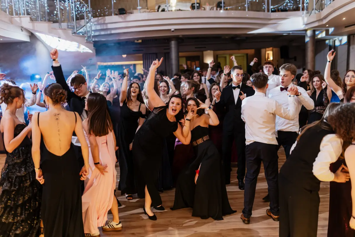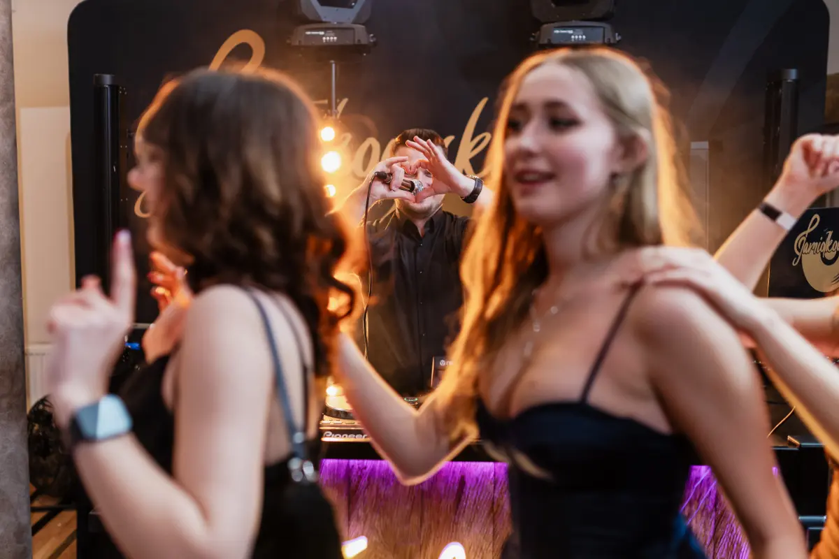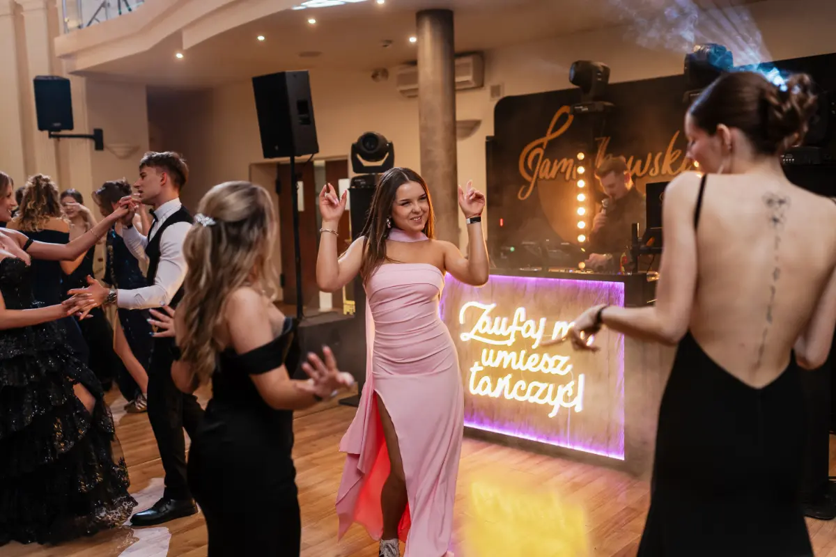 Ciekawie było zobaczyć rok po roku jak się zmienia sposób zabawy tej samej szkoły. Rok temu na studniówce było więcej rapsów, może trochę więcej szaleństwa, w tym roku większy spokój, nieco wolniejsze tempo – a przy tym dalej fajna energia i wybuchy wariactw. Tym razem trochę inaczej dzieliliśmy pracę, zmienialiśmy się z Ulą na ściance, raz Ona tam rządziła a ja robiłem imprezę, a potem zamianka.