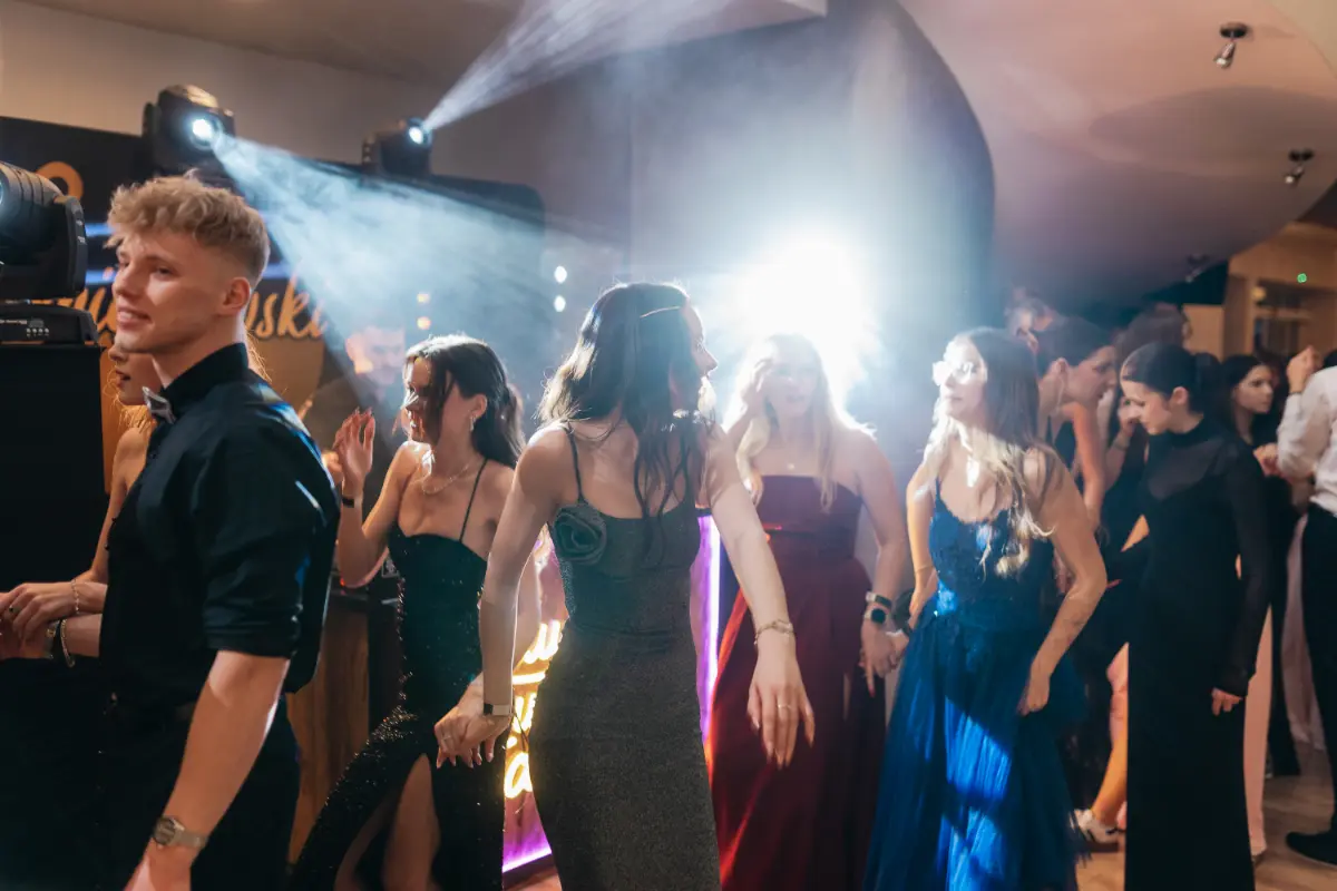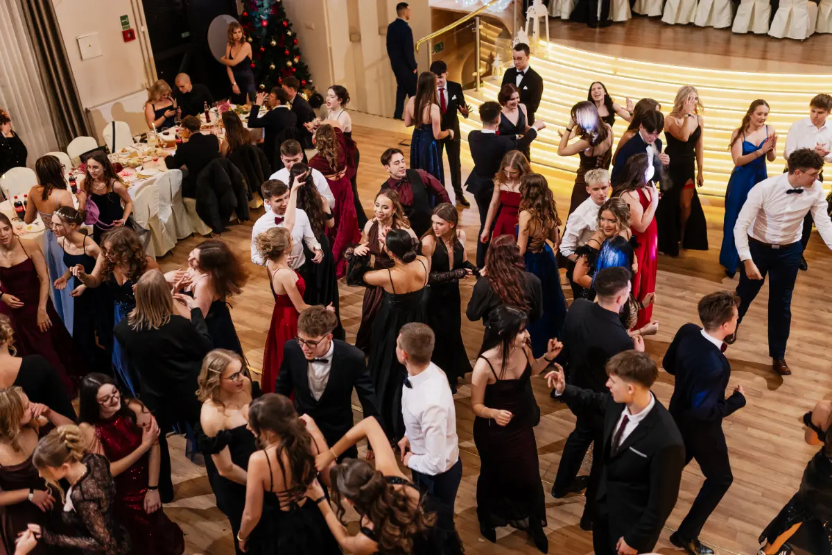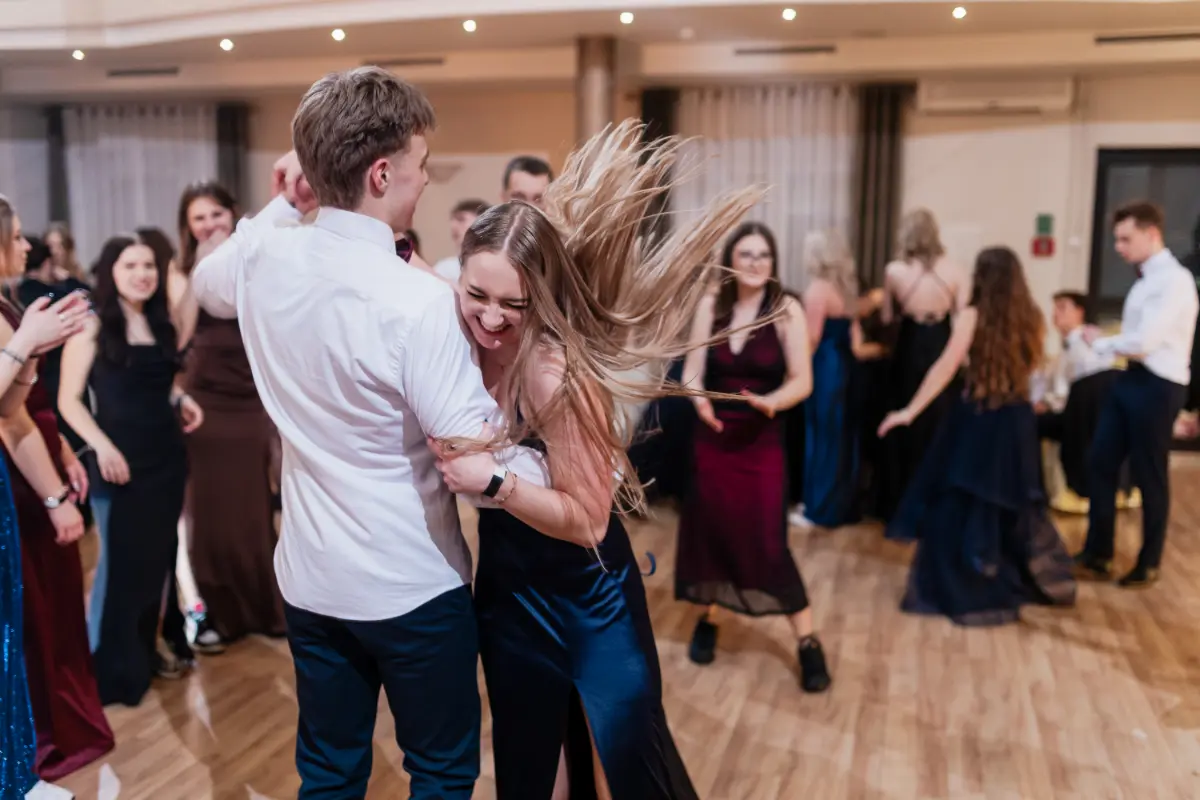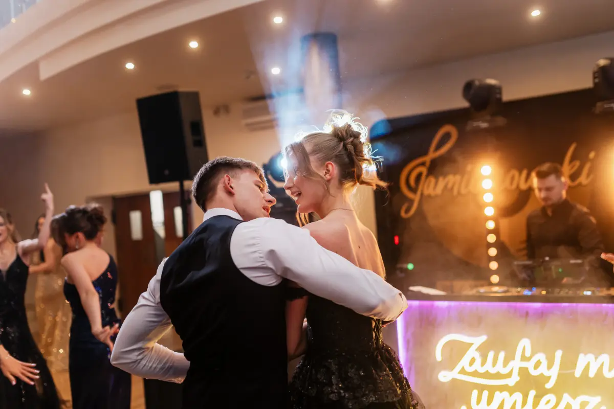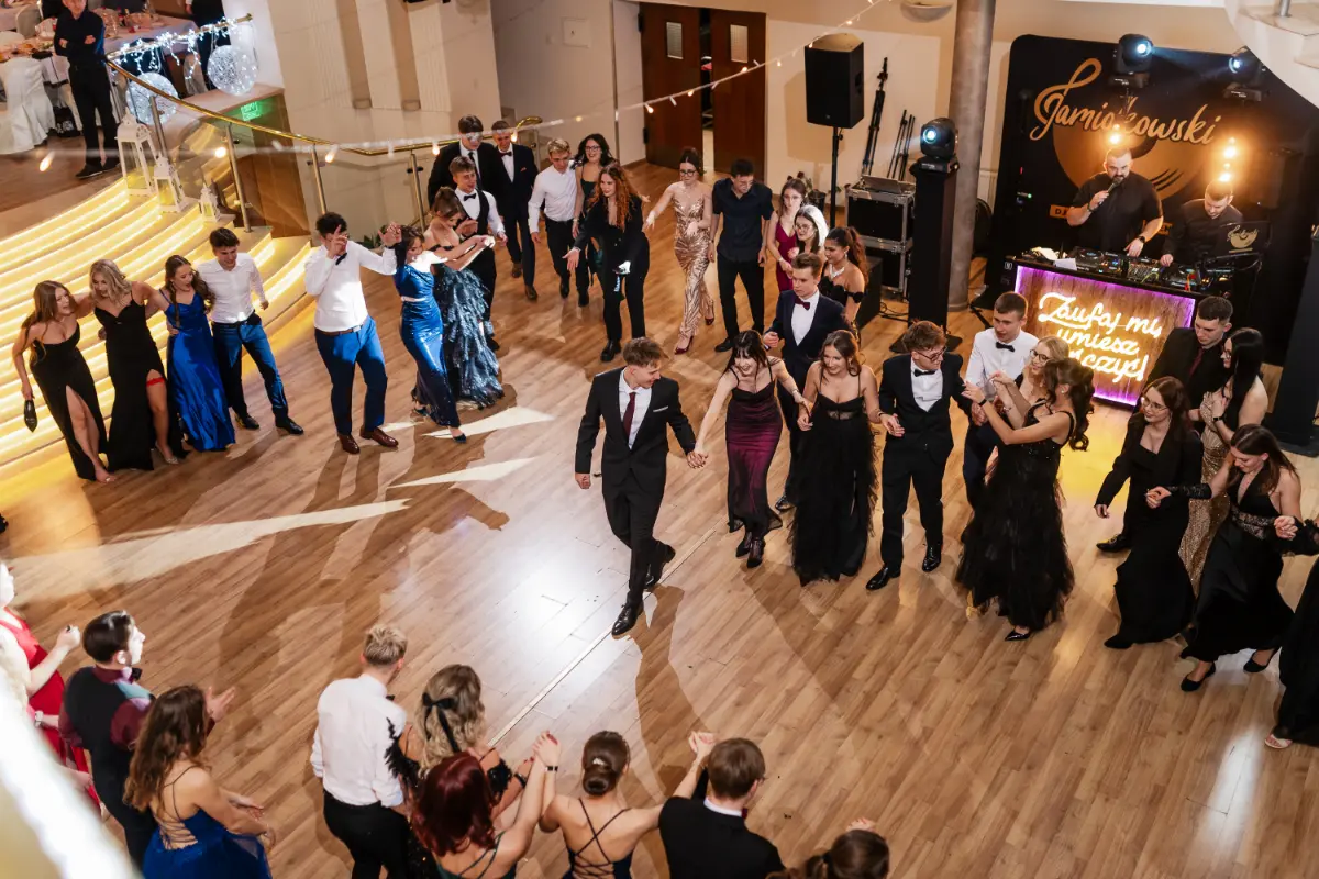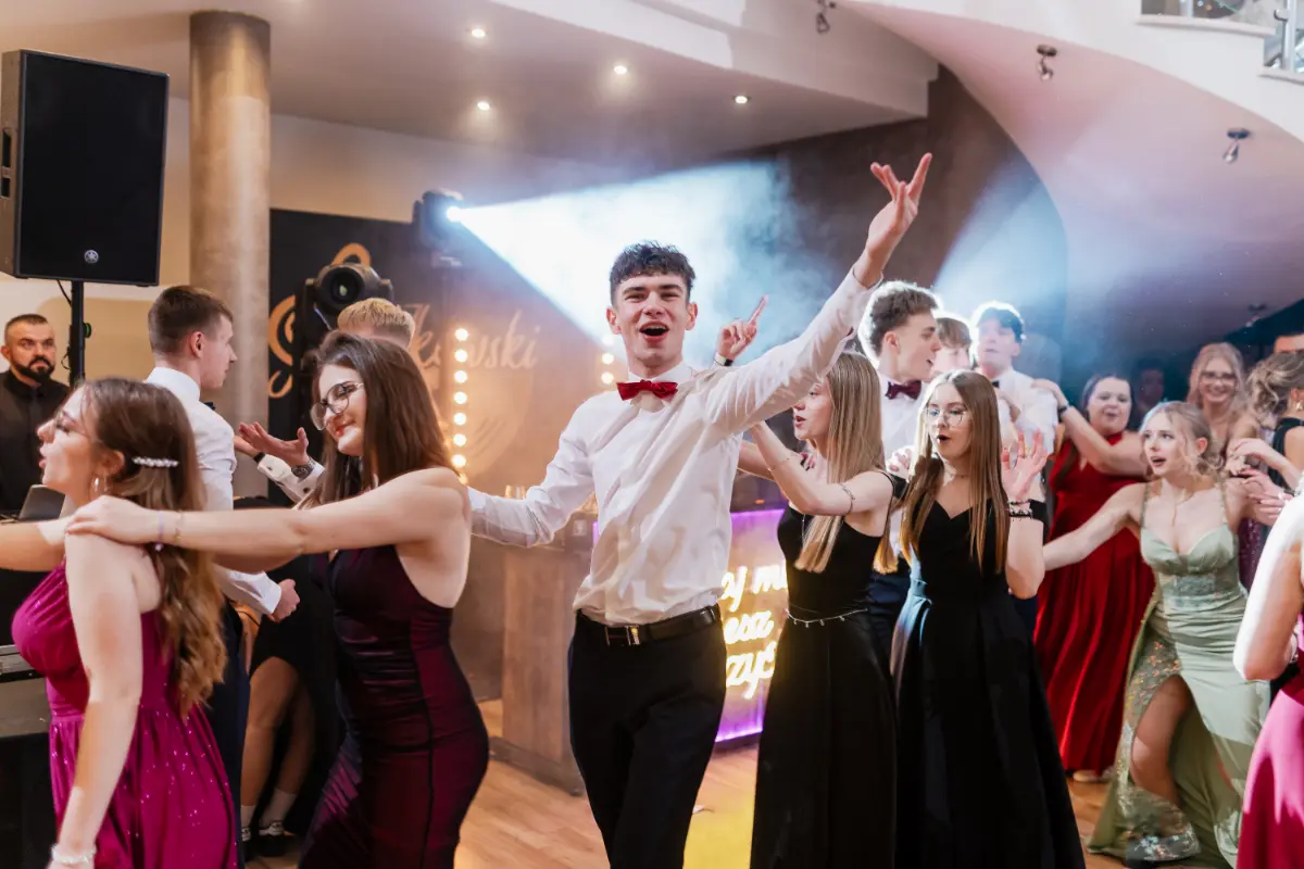 Ciekawie było zobaczyć rok po roku jak się zmienia sposób zabawy tej samej szkoły. Rok temu na studniówce było więcej rapsów, może trochę więcej szaleństwa, w tym roku większy spokój, nieco wolniejsze tempo – a przy tym dalej fajna energia i wybuchy wariactw. Tym razem trochę inaczej dzieliliśmy pracę, zmienialiśmy się z Ulą na ściance, raz Ona tam rządziła a ja robiłem imprezę, a potem zamianka.