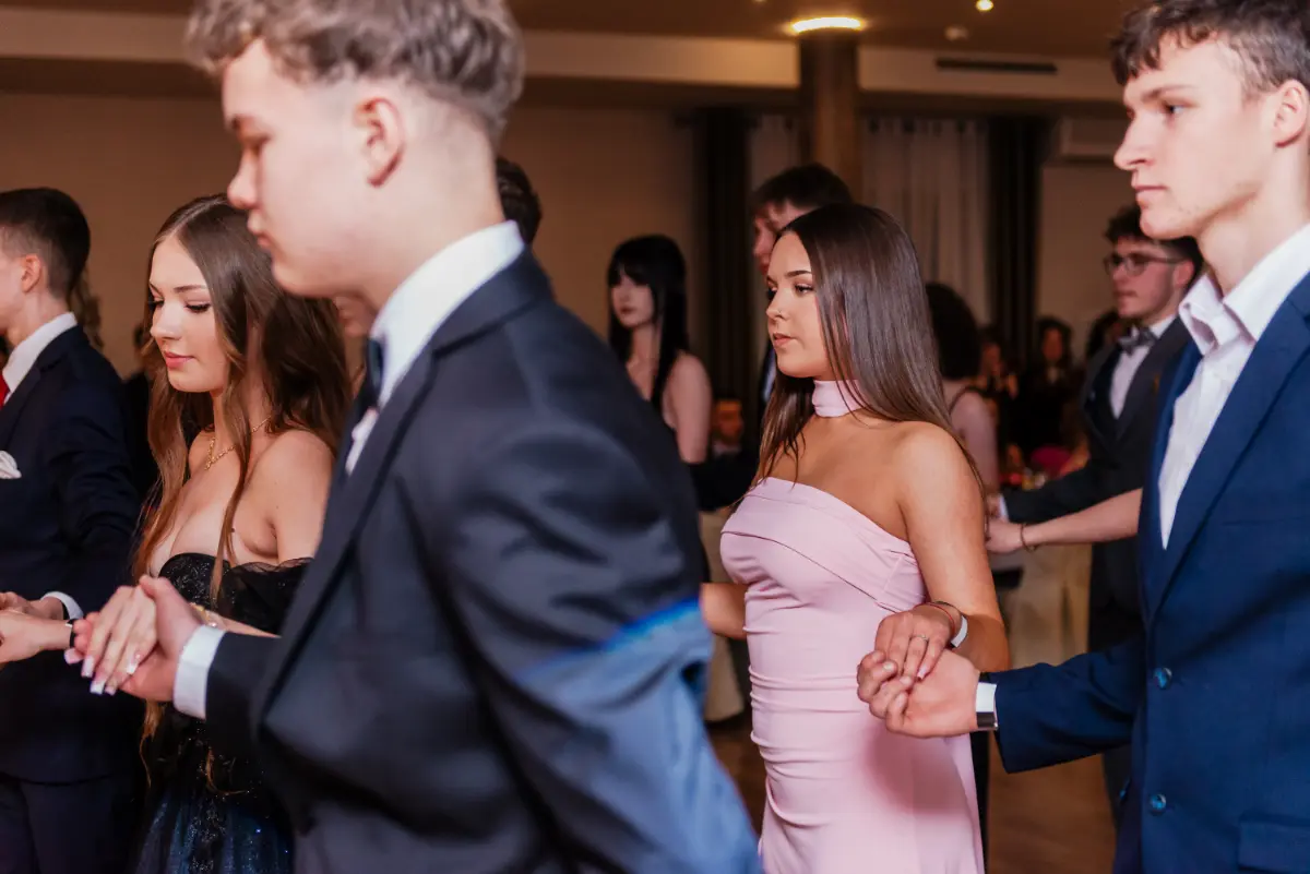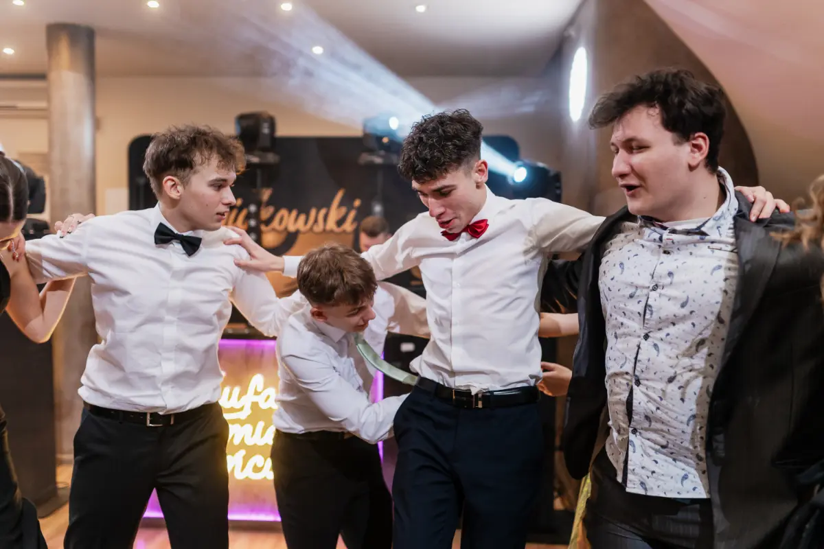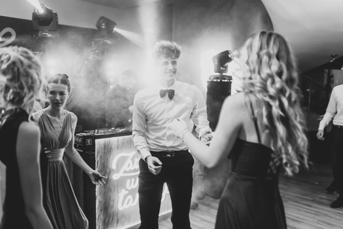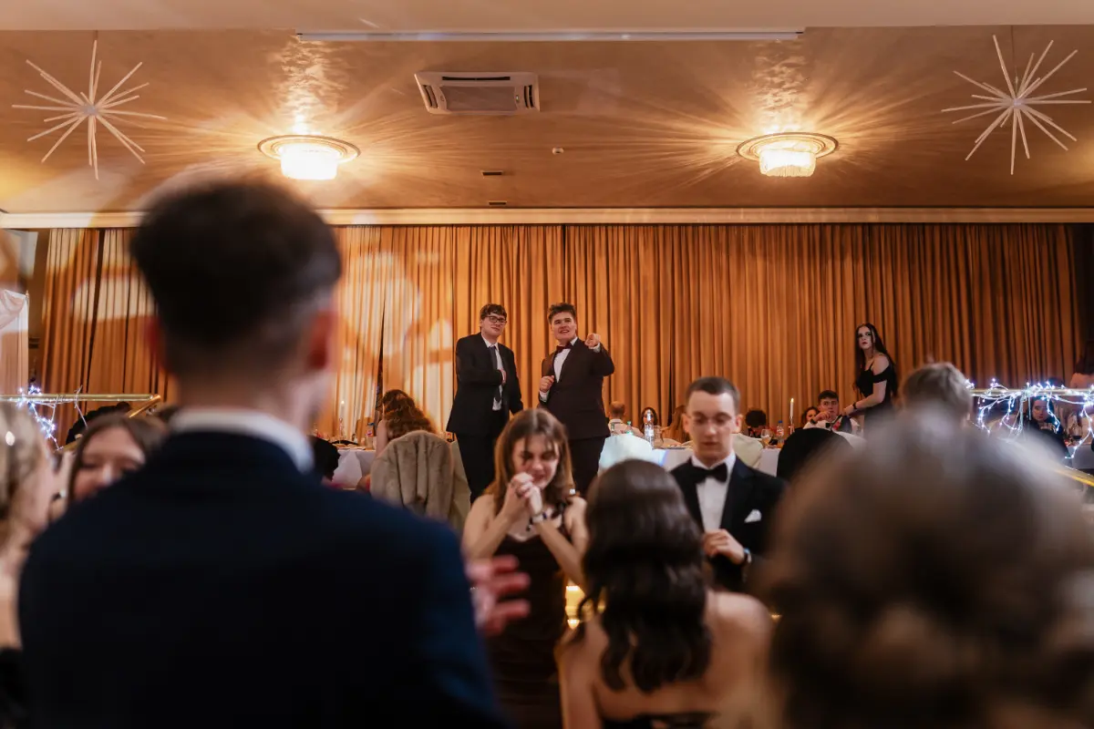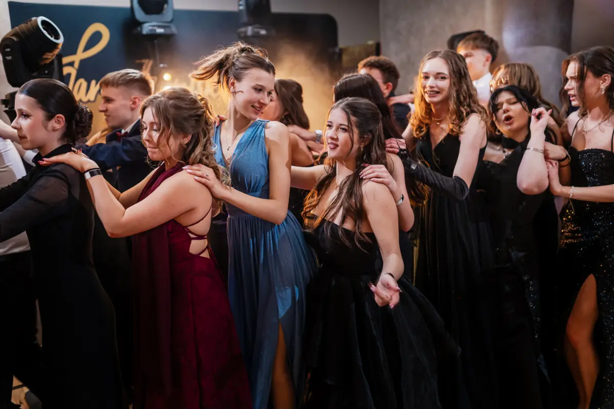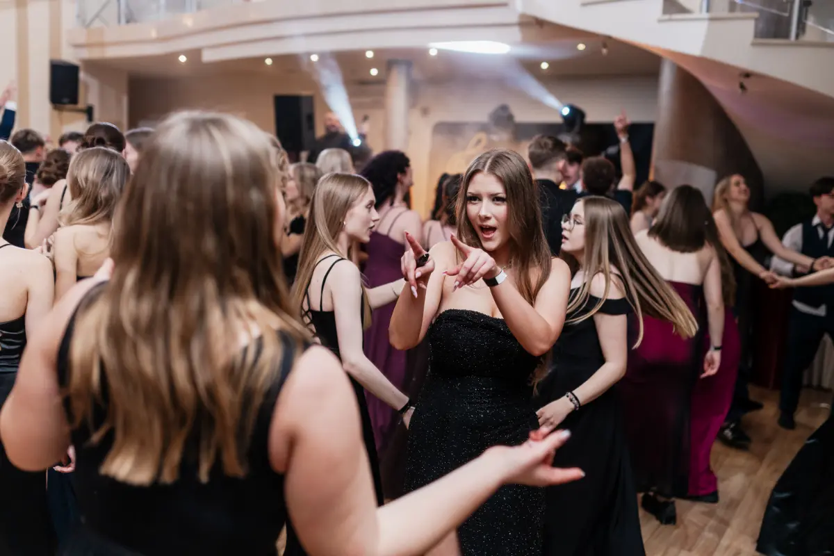 Ciekawie było zobaczyć rok po roku jak się zmienia sposób zabawy tej samej szkoły. Rok temu na studniówce było więcej rapsów, może trochę więcej szaleństwa, w tym roku większy spokój, nieco wolniejsze tempo – a przy tym dalej fajna energia i wybuchy wariactw. Tym razem trochę inaczej dzieliliśmy pracę, zmienialiśmy się z Ulą na ściance, raz Ona tam rządziła a ja robiłem imprezę, a potem zamianka.