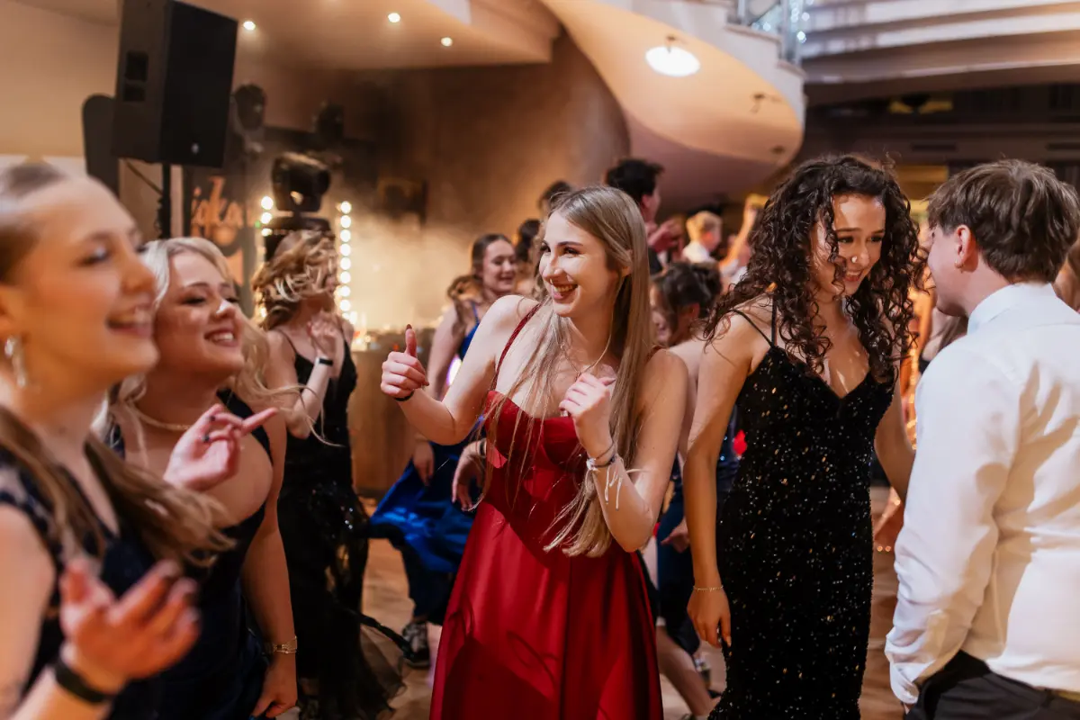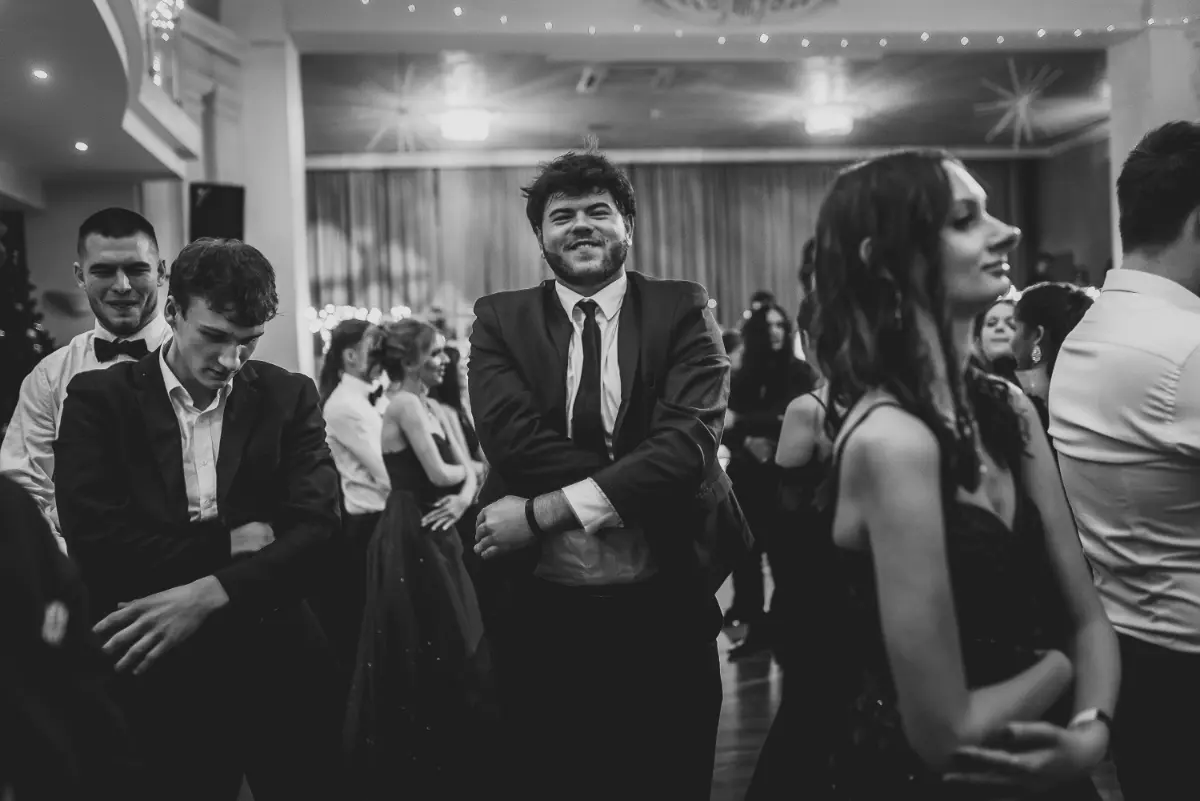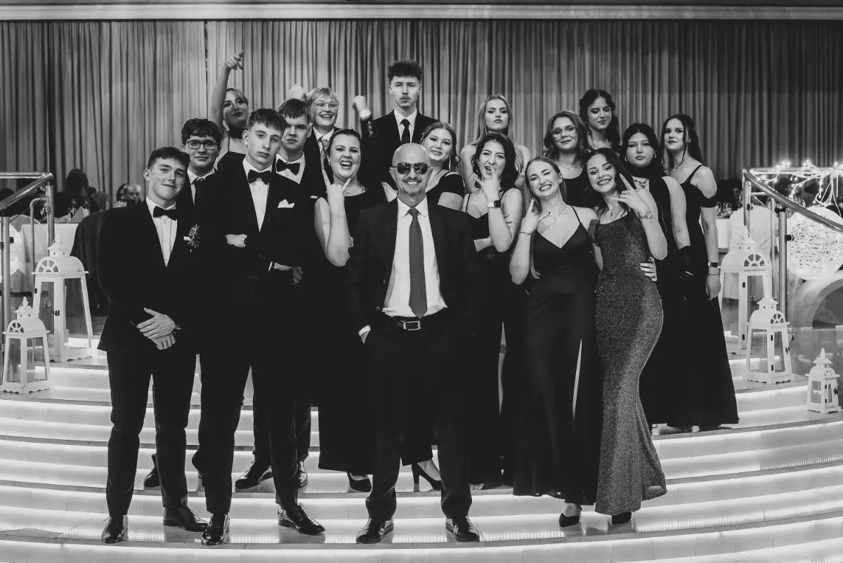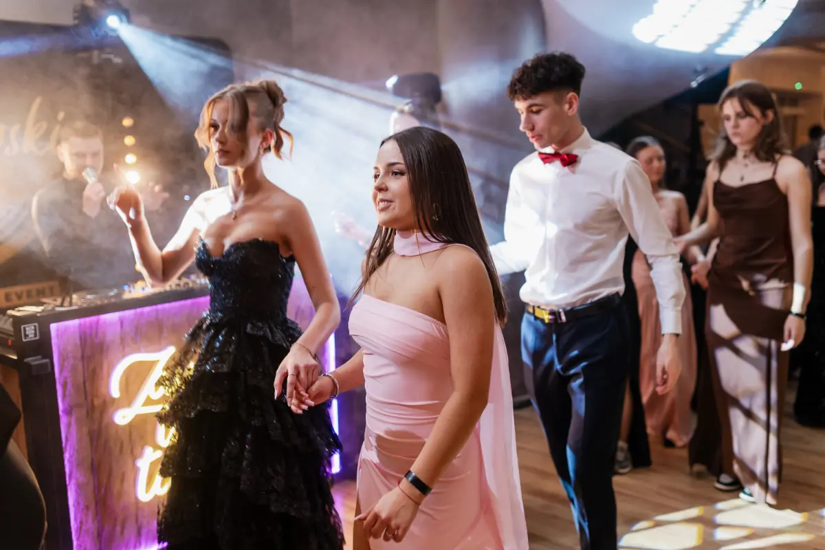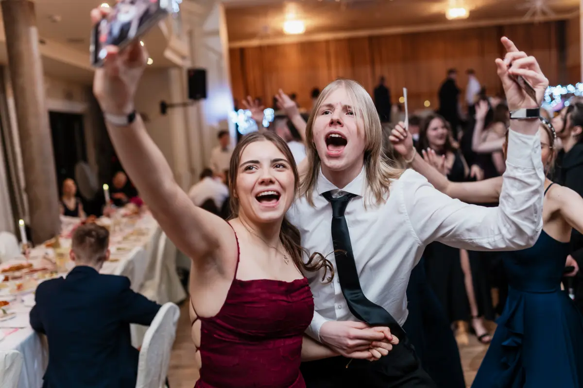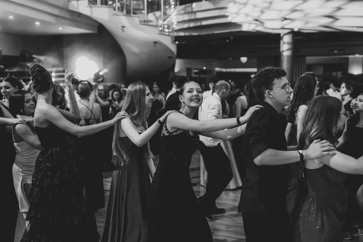Ciekawie było zobaczyć rok po roku jak się zmienia sposób zabawy tej samej szkoły. Rok temu na studniówce było więcej rapsów, może trochę więcej szaleństwa, w tym roku większy spokój, nieco wolniejsze tempo – a przy tym dalej fajna energia i wybuchy wariactw. Tym razem trochę inaczej dzieliliśmy pracę, zmienialiśmy się z Ulą na ściance, raz Ona tam rządziła a ja robiłem imprezę, a potem zamianka.