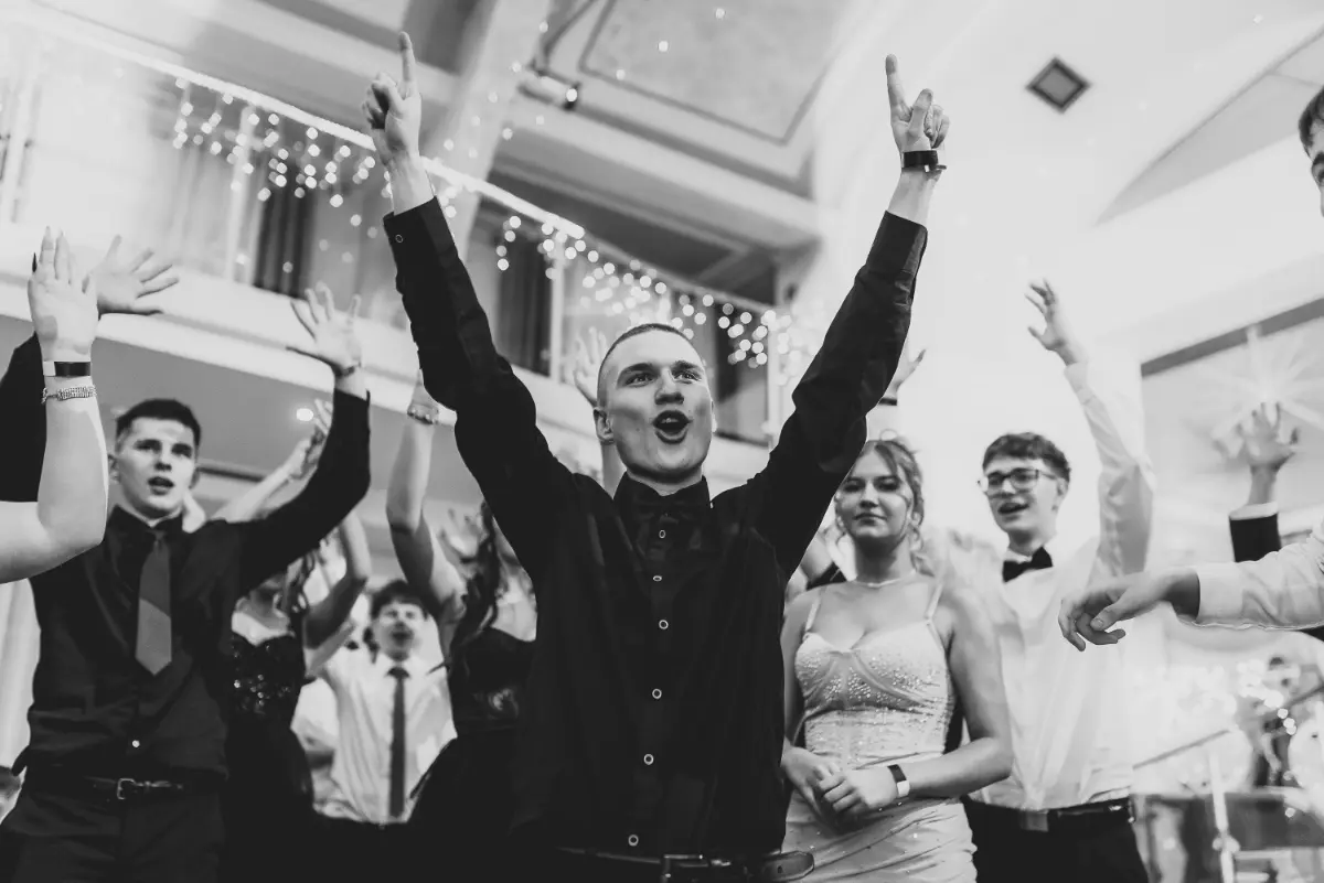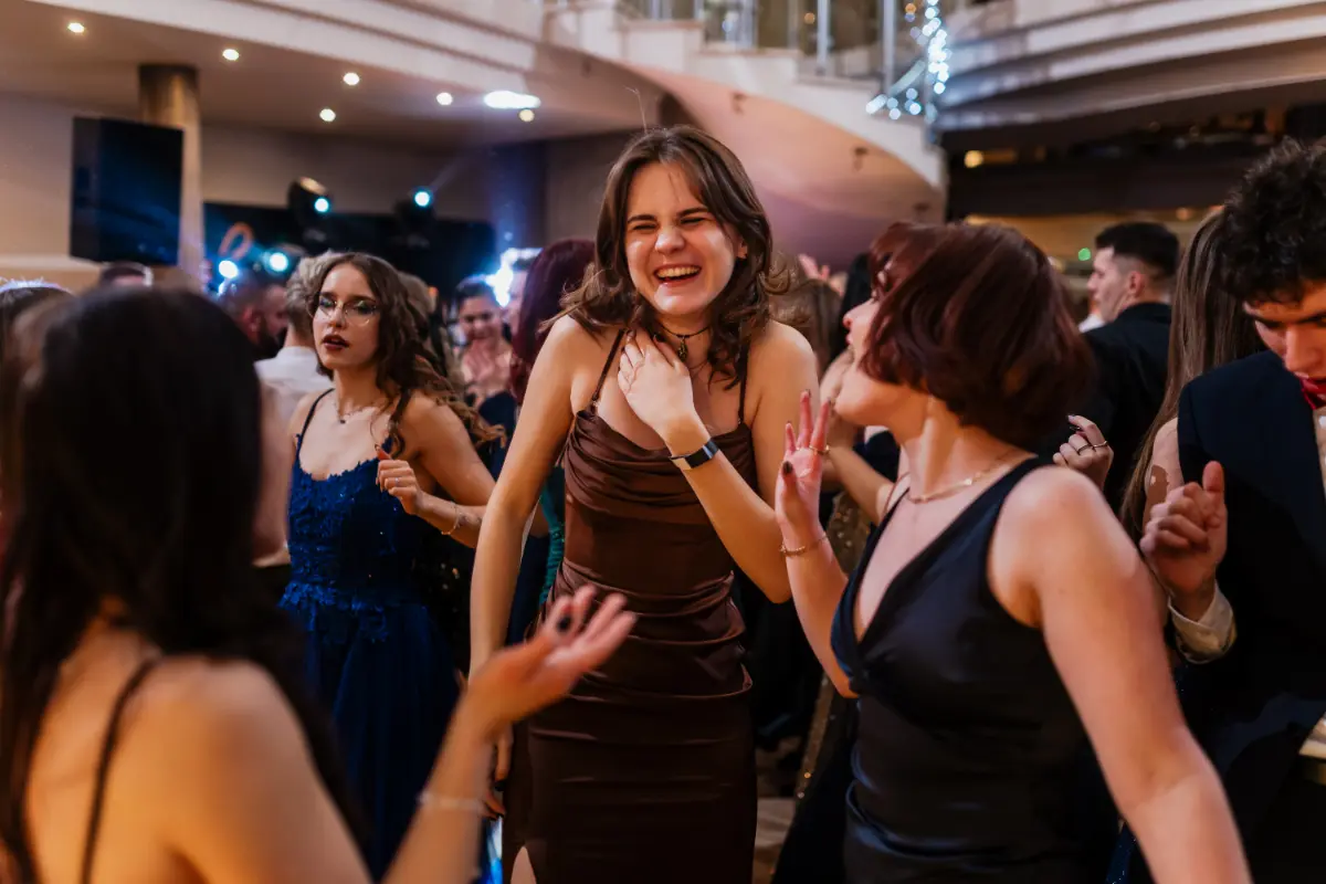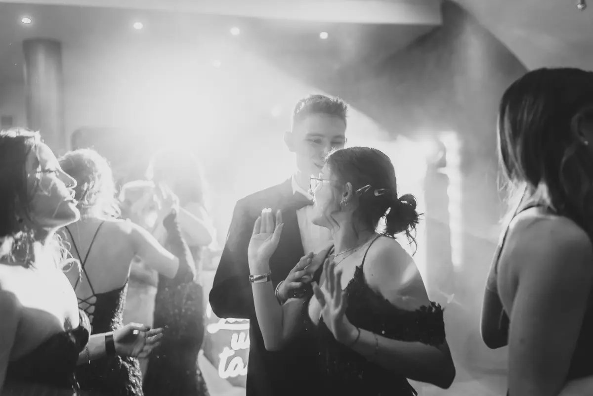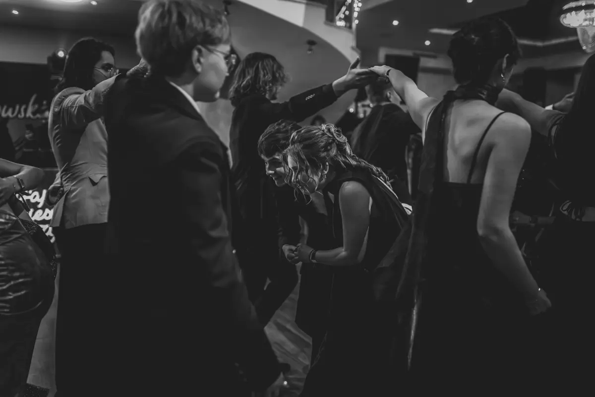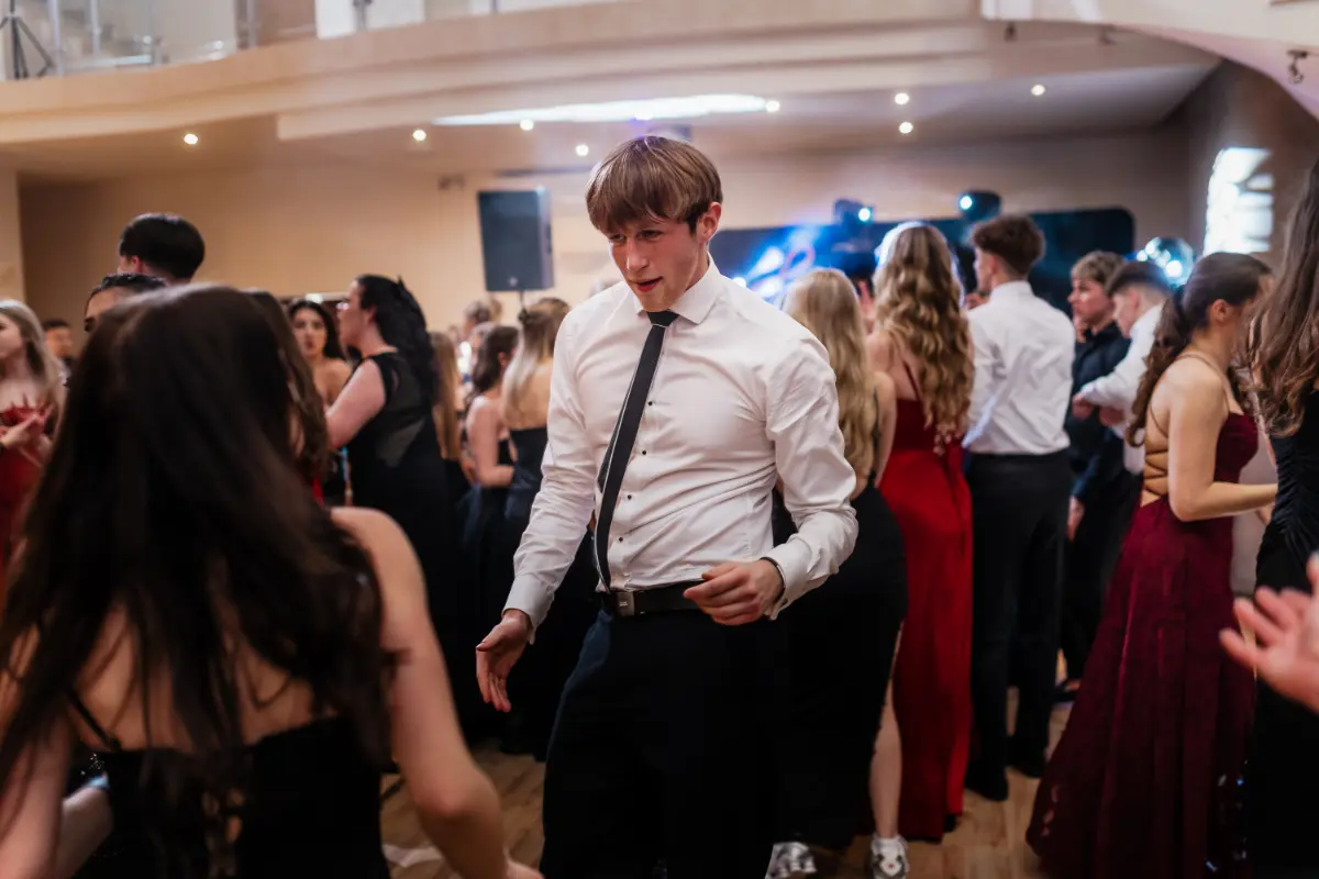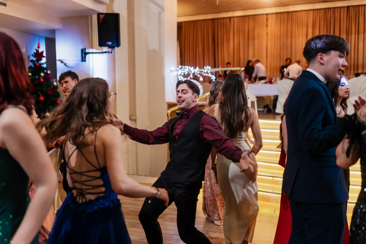 Ciekawie było zobaczyć rok po roku jak się zmienia sposób zabawy tej samej szkoły. Rok temu na studniówce było więcej rapsów, może trochę więcej szaleństwa, w tym roku większy spokój, nieco wolniejsze tempo – a przy tym dalej fajna energia i wybuchy wariactw. Tym razem trochę inaczej dzieliliśmy pracę, zmienialiśmy się z Ulą na ściance, raz Ona tam rządziła a ja robiłem imprezę, a potem zamianka.