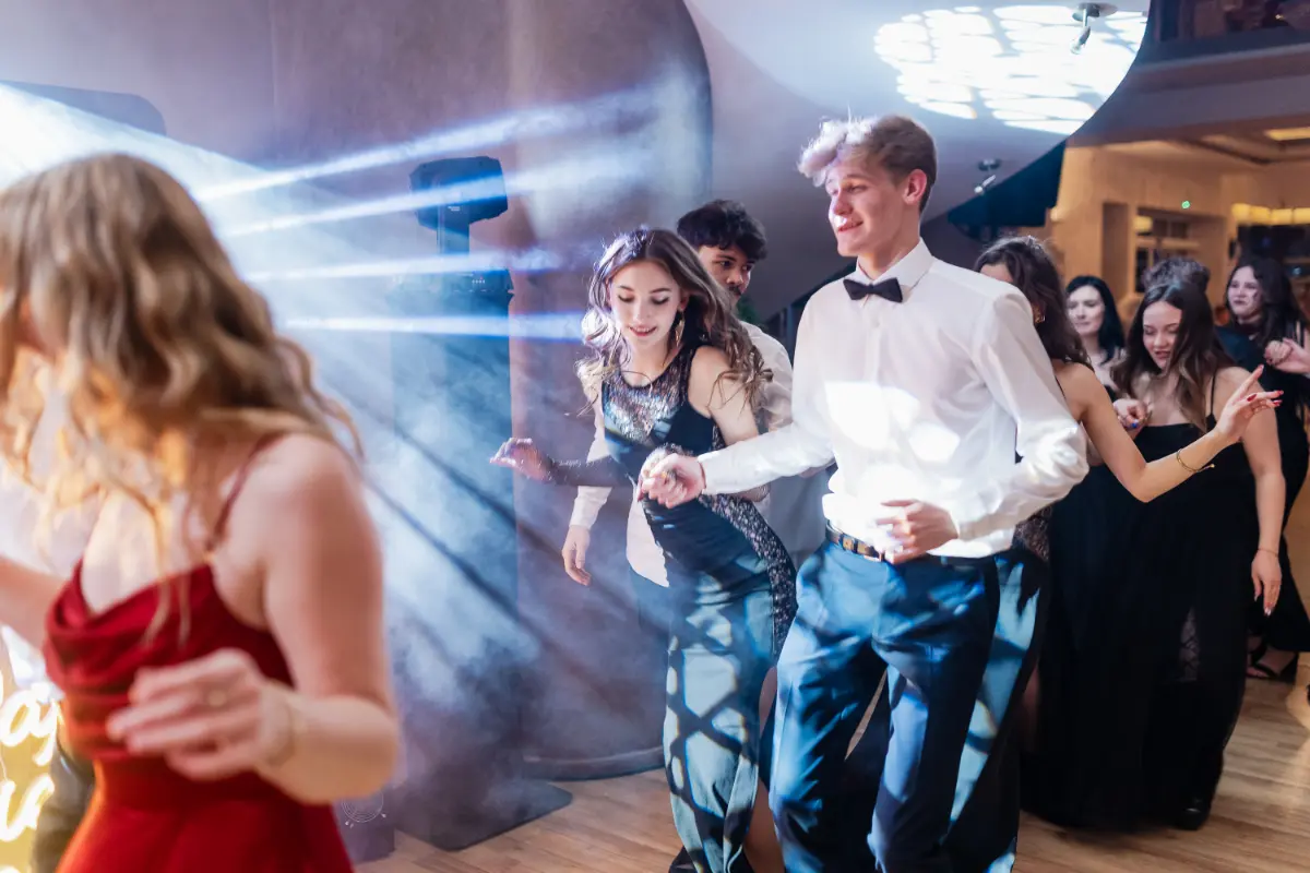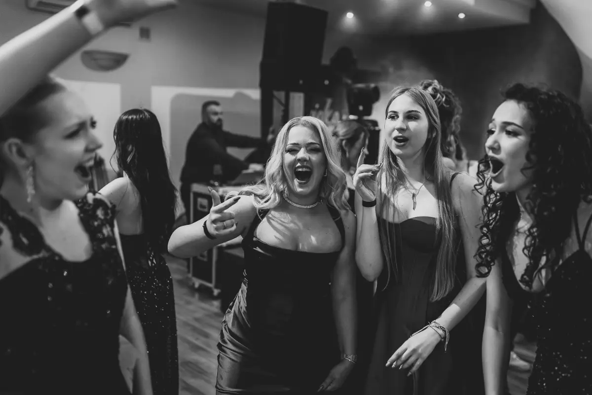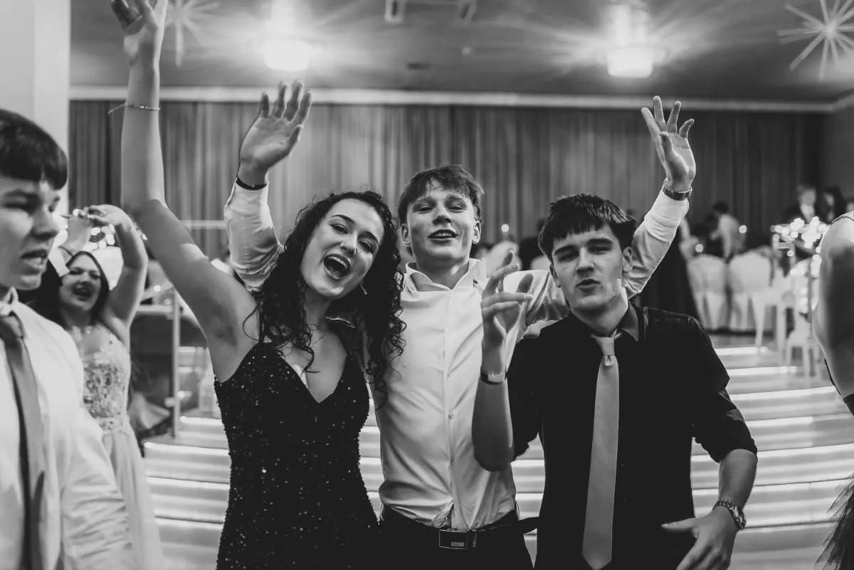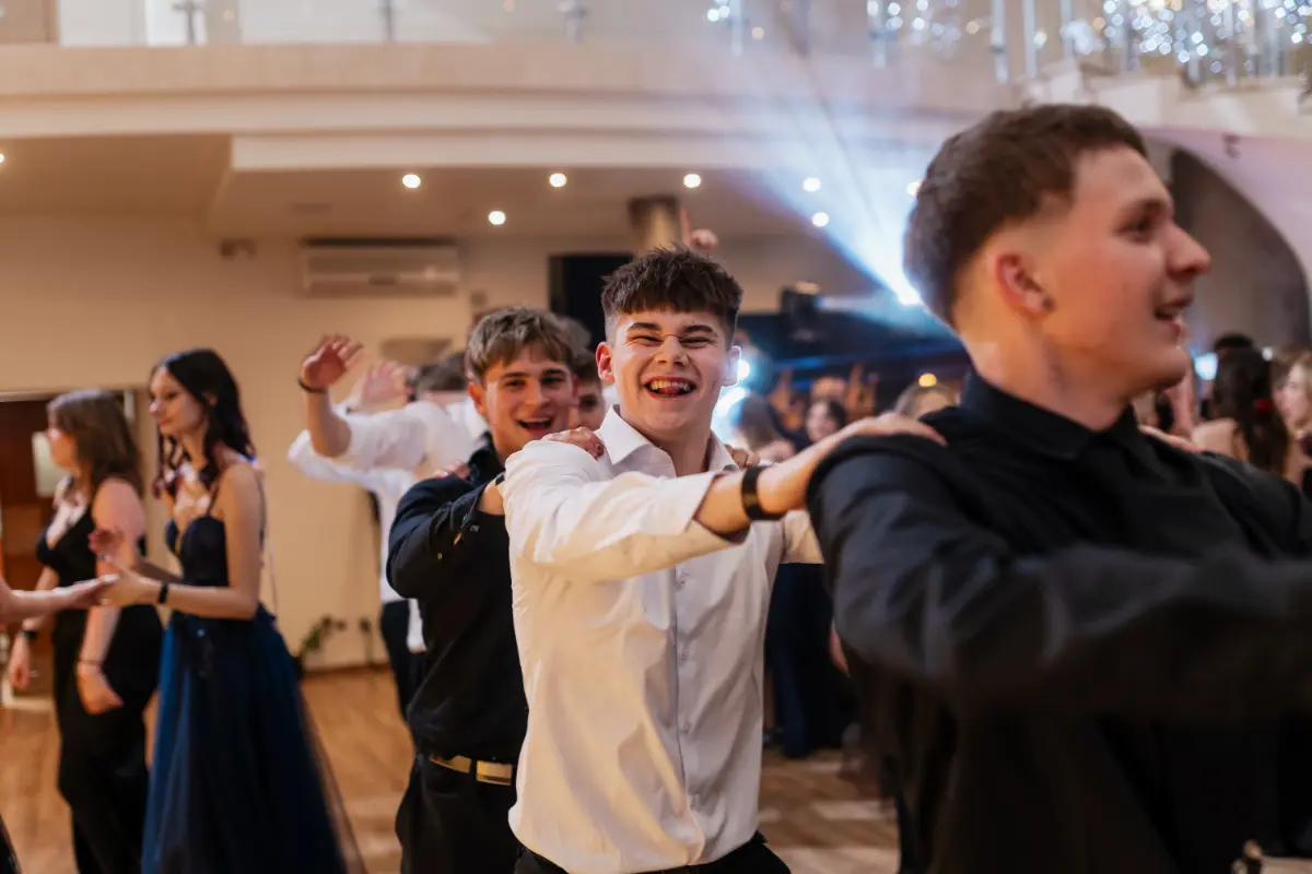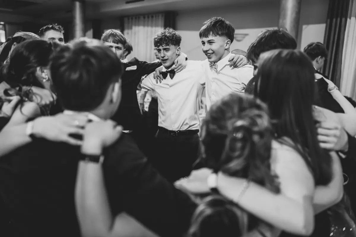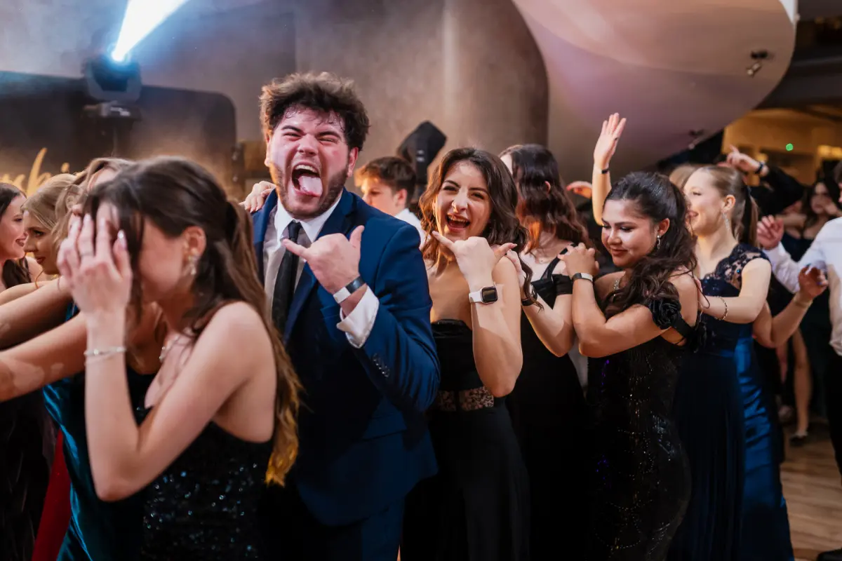 Ciekawie było zobaczyć rok po roku jak się zmienia sposób zabawy tej samej szkoły. Rok temu na studniówce było więcej rapsów, może trochę więcej szaleństwa, w tym roku większy spokój, nieco wolniejsze tempo – a przy tym dalej fajna energia i wybuchy wariactw. Tym razem trochę inaczej dzieliliśmy pracę, zmienialiśmy się z Ulą na ściance, raz Ona tam rządziła a ja robiłem imprezę, a potem zamianka.