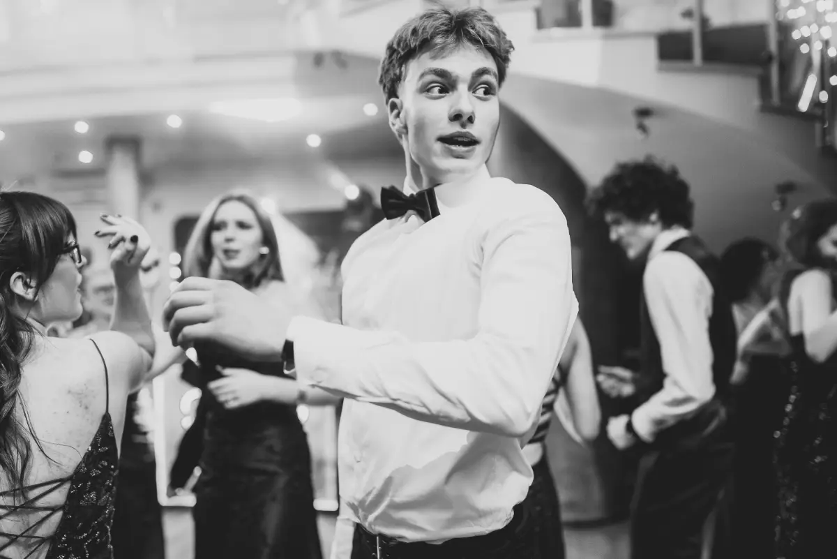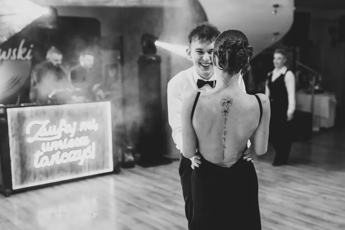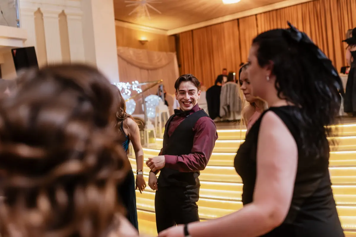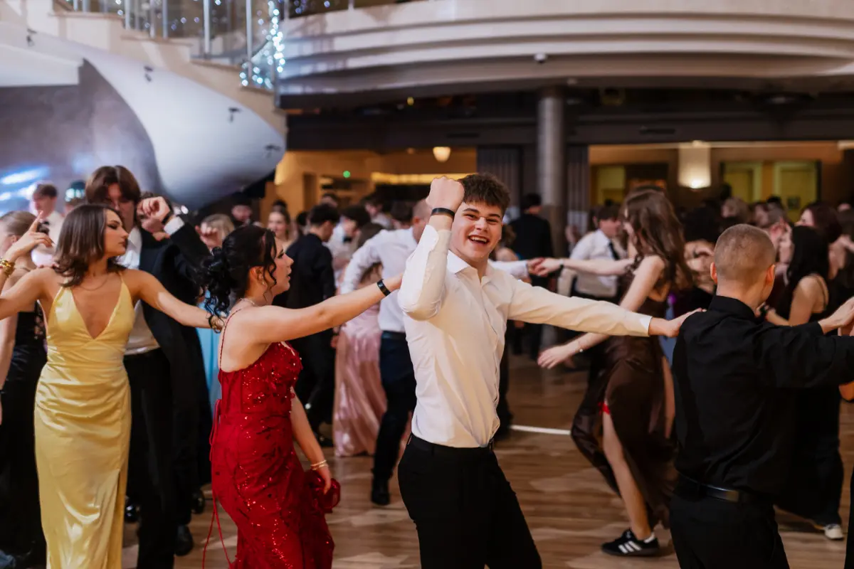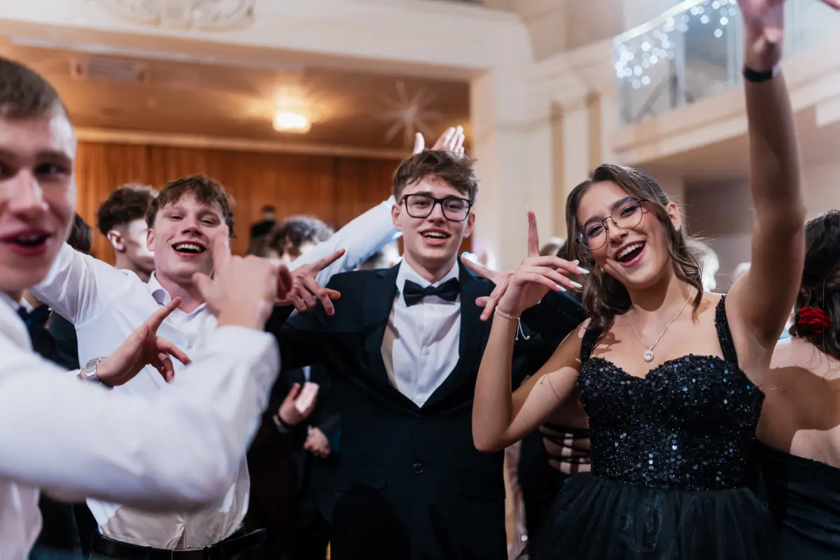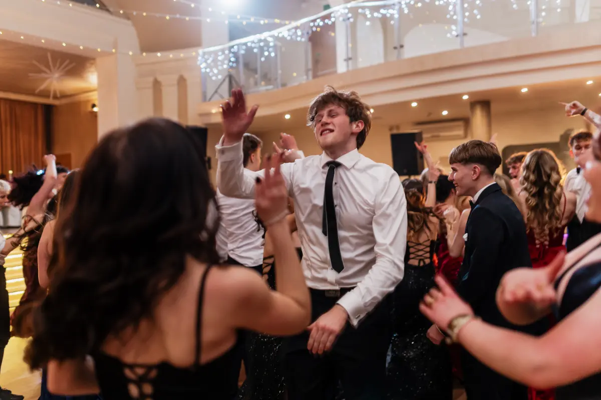 Ciekawie było zobaczyć rok po roku jak się zmienia sposób zabawy tej samej szkoły. Rok temu na studniówce było więcej rapsów, może trochę więcej szaleństwa, w tym roku większy spokój, nieco wolniejsze tempo – a przy tym dalej fajna energia i wybuchy wariactw. Tym razem trochę inaczej dzieliliśmy pracę, zmienialiśmy się z Ulą na ściance, raz Ona tam rządziła a ja robiłem imprezę, a potem zamianka.