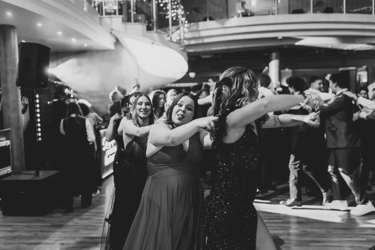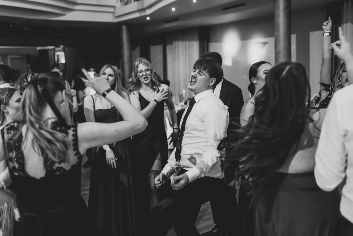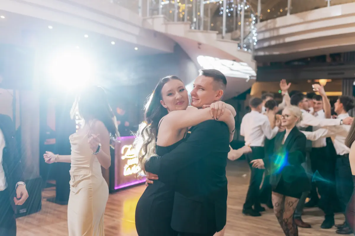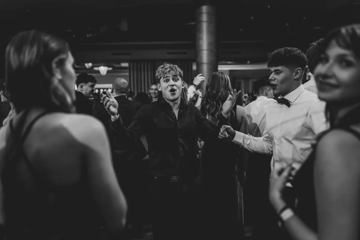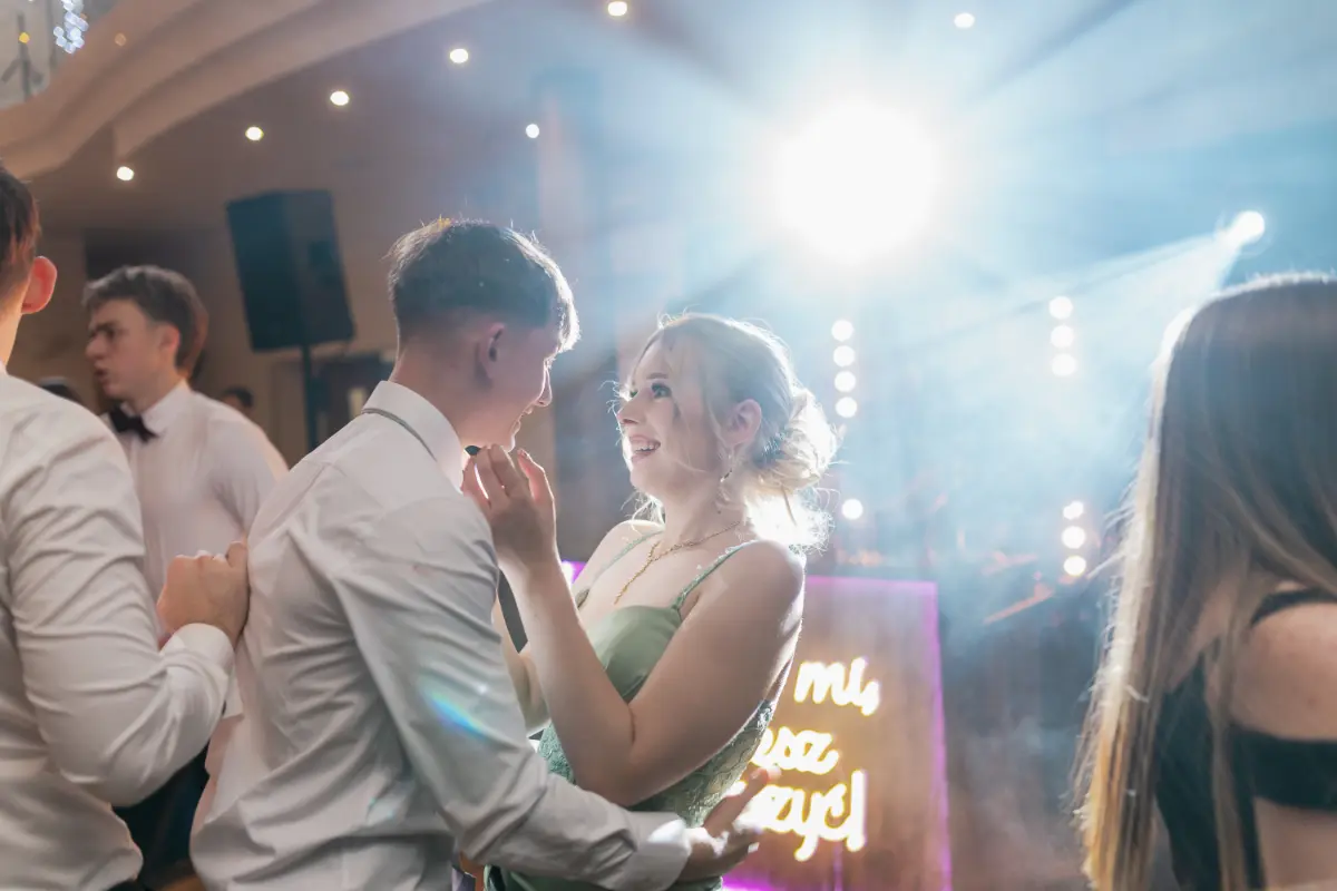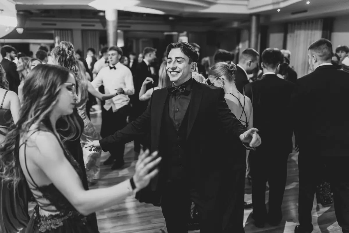 Ciekawie było zobaczyć rok po roku jak się zmienia sposób zabawy tej samej szkoły. Rok temu na studniówce było więcej rapsów, może trochę więcej szaleństwa, w tym roku większy spokój, nieco wolniejsze tempo – a przy tym dalej fajna energia i wybuchy wariactw. Tym razem trochę inaczej dzieliliśmy pracę, zmienialiśmy się z Ulą na ściance, raz Ona tam rządziła a ja robiłem imprezę, a potem zamianka.